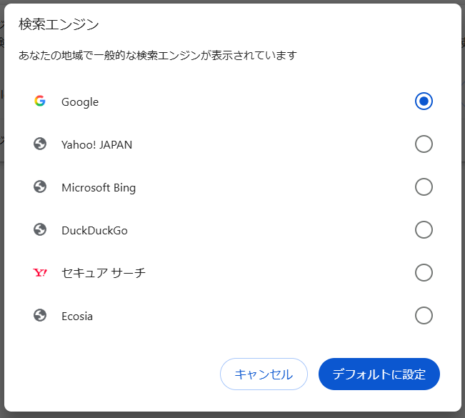 ブラウザが利用する検索エンジンはデフォルトで決まっています。